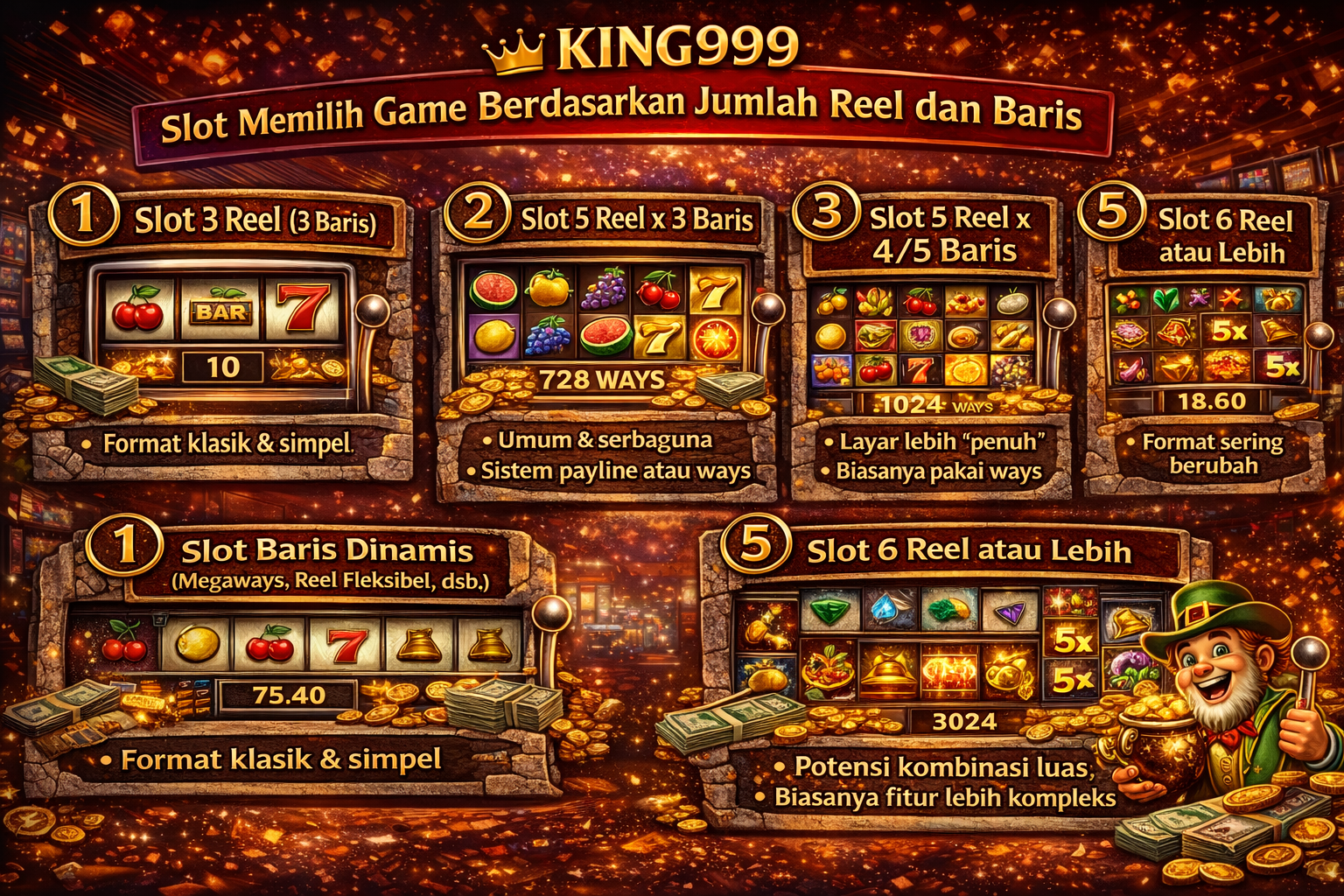 Jumlah reel dan baris adalah cara cepat untuk menebak “rasa” sebuah game slot online di KING999. Format klasik seperti 3 reel dan 5×3 cocok untuk yang ingin sederhana dan mudah dibaca. Format 5×4, 5×5, atau reel lebih banyak memberi layar lebih ramai dan variasi kombinasi, sementara baris dinamis menawarkan pengalaman yang berubah-ubah namun bisa menguji kesabaran.